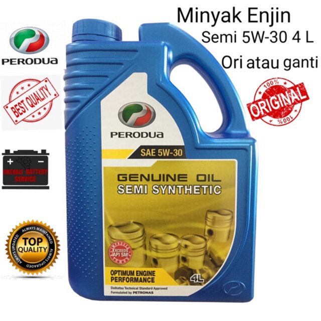 Ia tersedia di pusat servis rasmi dan. Perodua Semi Synthetic 5W-30 4L. 1000 Pagi - 600PMAhad.